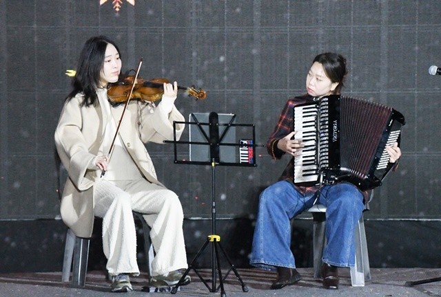 주무대에서는, 마치 약속이라도 한 듯 낭만적인 공연이 쉴 새 없이 이어졌습니다. 감미로운 하모니카 소리와 통기타 선율이 울려 퍼지는가 하면, 청아한 목소리의 ‘라나’가 부르는 캐럴은, 마치 크리스마스 영화의 한 장면에 들어와 있는 듯한 착각을 불러일으켰습니다.