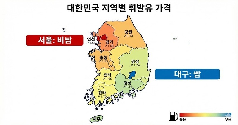 지역별로 살펴보면 서울과 대구의 온도 차가 뚜렷했다. 전국에서 기름값이 가장 비싼 곳은 역시 서울이었다. 서울의 휘발유 평균 판매가격은 리터당 1,796.1원으로, 전국 평균보다 60.8원이나 높았다. 지난주보다는 9.0원 내렸지만, 여전히 1,800원 선에 육박하는 가격이다. 반면 기름값이 가장 저렴한 지역인 대구는 리터당 1,706.5원을 기록했다. 서울에서 주유하는 것보다 리터당 약 90원 가까이 싸게 넣을 수 있는 셈이다.