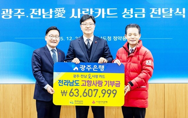 [위키트리 광주전남취재본부 노해섭 기자]광주은행(은행장 고병일)은 26일 전남도청에서 전남지역 복지사각지대 해소를 위한 광주·전남愛사랑카드 성금 6,360만 원을 전달했다고 밝혔다.