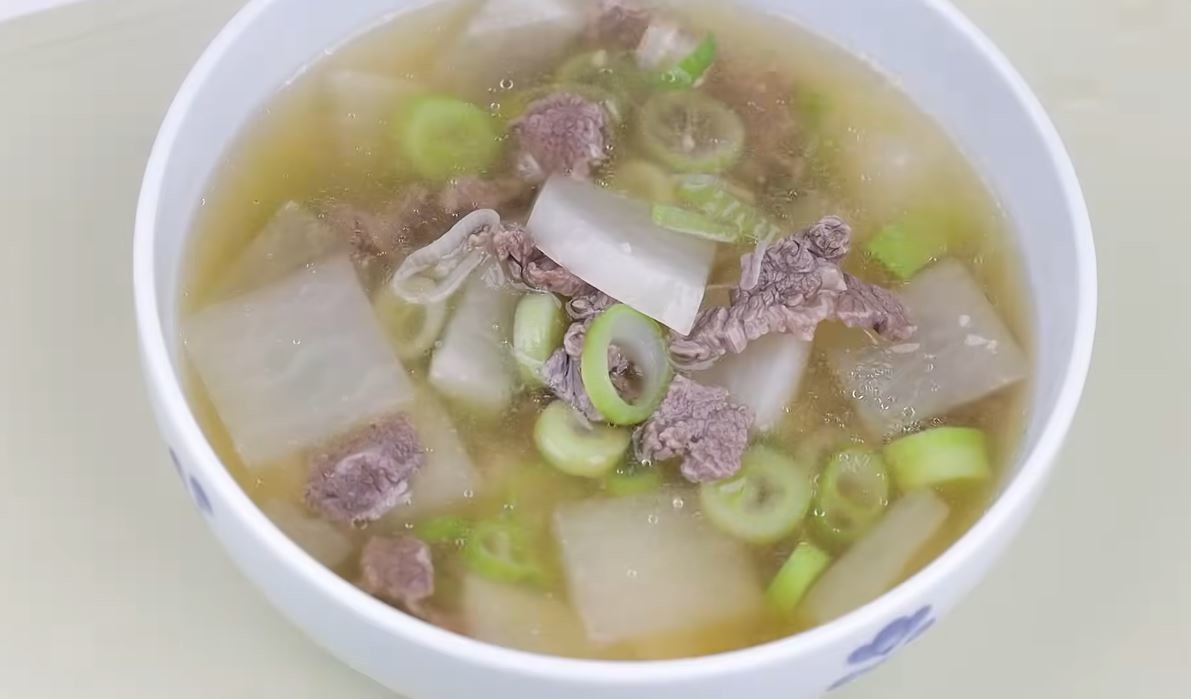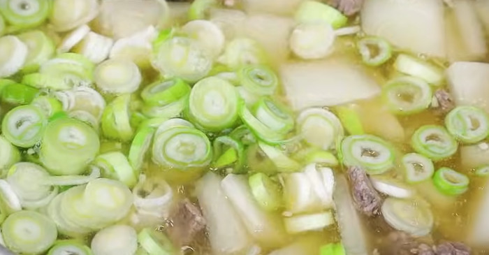 마무리 단계에서 대파를 넣고 한소끔만 더 끓였다. 파를 너무 일찍 넣으면 향이 날아가고 국물이 탁해질 수 있다. 후추는 아주 소량만 넣어 고기 향을 살렸다. 이 조리법의 장점은 재료 본연의 맛이 살아난다는 점이다. 양념을 많이 하지 않아도 무의 단맛과 소고기의 감칠맛이 자연스럽게 어우러진다. 자극적이지 않지만 계속 숟가락이 가는 국이 완성된다.
