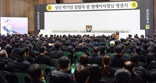 400여 명의 발걸음이 향한 곳은 호남대학교의 설립자, 성인(省仁) 박기인 박사의 마지막 길이었다. 그의 영정 앞에서, 제자들과 동료들은 한 교육자가 일생을 바쳐 이뤄낸 위대한 유산의 의미를 되새겼다.
