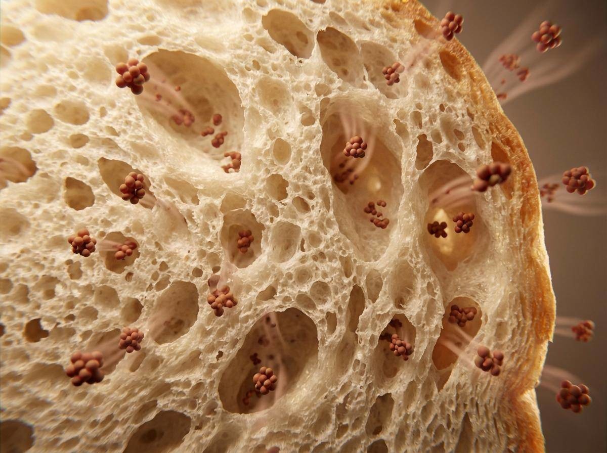 식빵이 냄새를 잡는 이유는 구조에 있다. 식빵 속은 미세한 구멍이 촘촘히 이어진 다공성(구멍이 많은) 형태다. 이 공간 사이로 공기 중 냄새 분자와 습기가 함께 흡착된다. 김치 냄새의 주성분으로 알려진 젖산과 초산 같은 휘발성 유기화합물은 공기 중에 퍼져 있다가 이런 다공성 물질에 달라붙기 쉽다. 식빵은 별도의 화학 성분 없이 물리적 흡착으로 냄새를 줄이는 역할을 한다.