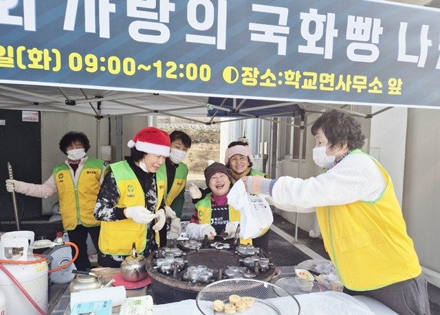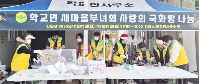 [위키트리 광주전남취재본부 노해섭 기자]세밑 한파가 기승을 부리는 가운데, 전남 함평군 학교면에 모락모락 피어오르는 국화빵 냄새가 이웃들의 마음을 녹이고 있다. 학교면 새마을부녀회가 연말연시를 맞아 지역 어르신들과 소외계층을 위한 특별한 간식 나눔에 나섰기 때문이다.
