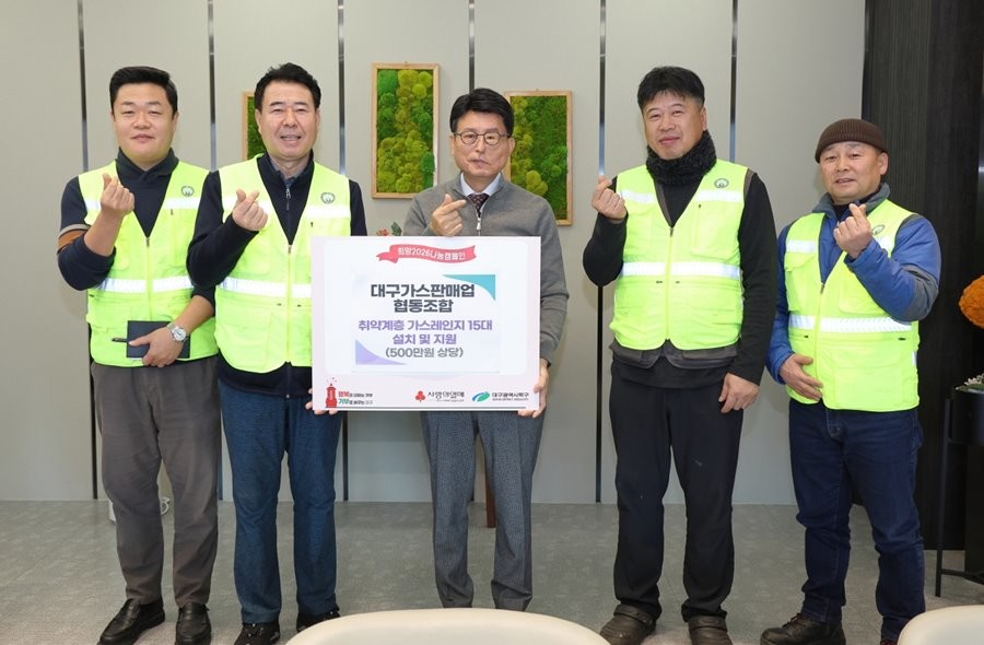 [대구=위키트리]전병수 기자]= 대구 북구청은 연맞을 맞아 대구가스판매업협동조합으로부터 취약계층을 위해 써달라며 500만원 상당의 LPG 가스레인지를 전달받았다.
