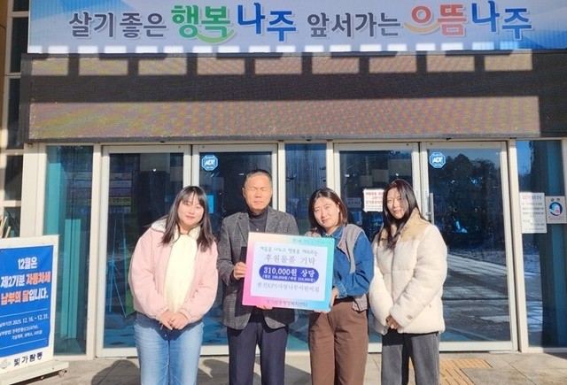 [위키트리 광주전남취재본부 노해섭 기자]전남 나주시 빛가람동(동장 김귀남)은 지난 26일 한전KPS사랑나무어린이집(원장 전보영)에서 ‘사랑의 라면 트리’ 행사로 모은 라면 209개와 ‘그린(Green) 플리마켓’ 수익금 10만 원을 기부했다고 밝혔다.