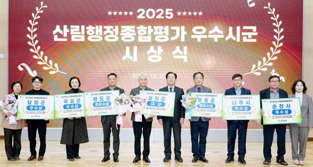 [위키트리 광주전남취재본부 노해섭 기자]전라남도(도지사 김영록)는 도내 22개 시군을 대상으로 실시한 2025년 산림행정 종합평가 결과, 우수기관 7개 시군을 선정했다고 밝혔다.