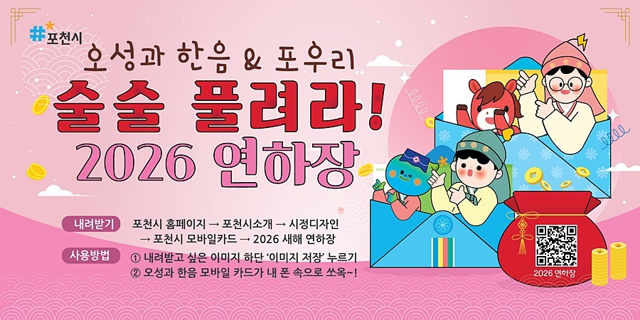 경기 포천시(시장 백영현)는 2026년 병오년(丙午年) 새해를 맞아 시민들이 감사와 따뜻한 마음을 손쉽게 전할 수 있도록 ‘2026 모바일 연하장’을 무료로 배포한다고 밝혔다.