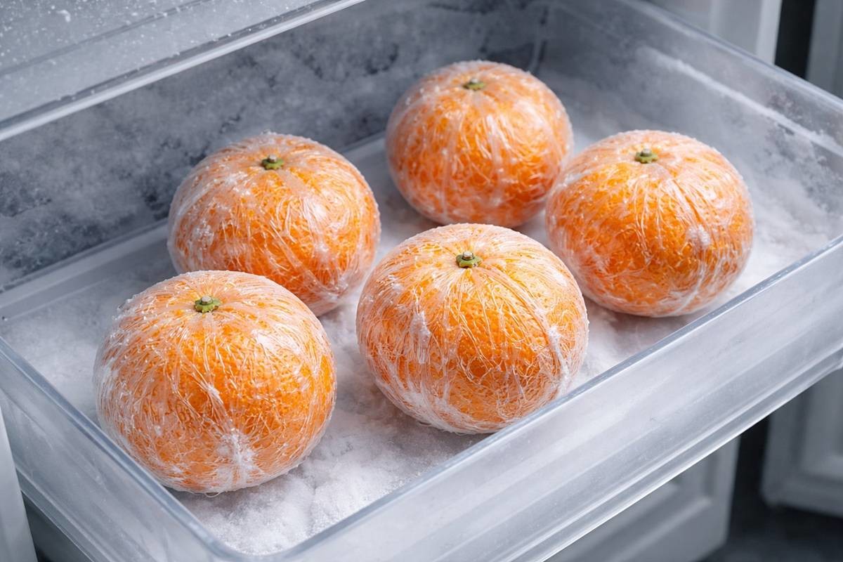 냉동 귤을 만들려면 준비 과정이 생각보다 단순하다. 통째로 얼릴 경우 먼저 귤을 가볍게 물로 씻어 표면의 얼룩이나 먼지를 제거한 뒤, 키친타월 등으로 물기를 꼼꼼히 닦아낸다. 이후 귤을 한 개씩 랩으로 감싸는데, 서리가 끼는 것을 막기 위해 랩 가장자리를 비틀 듯이 단단히 밀착시키는 게 포인트다. 랩으로 감싼 귤은 지퍼백에 넣어 공기를 최대한 빼고 입구를 닫아 냉동실에 넣는다. 공기를 줄이면 냉동 냄새가 배는 것을 막고, 수분 증발로 인한 건조도 줄일 수 있다.