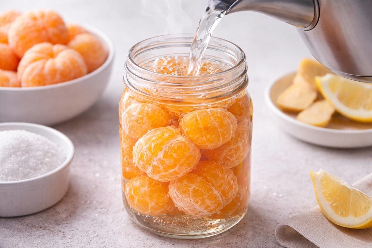 한편 귤을 ‘얼리는’ 방법과는 반대로, 귤에 ‘끓는 물’을 붓는 요리 팁도 화제다. 유튜브 채널 ‘집밥’ 레시피에 따르면 500ml 용량 내열 유리병에 껍질을 깐 귤을 꽉 채운 뒤 뜨거운 물을 병 끝까지 부어 10분간 둔다. 이후 물만 따라내 냄비에 붓고 설탕 150~200ml, 생강 한 쪽, 레몬 3조각, 소금 약간을 넣어 중불에 저어가며 끓인 다음 2분 정도 더 끓여 마무리한다. 레몬과 생강을 걸러낸 뒤 뜨거운 상태로 귤이 담긴 병에 다시 붓고 뚜껑을 꽉 닫아 병을 뒤집어 1~2시간 두면 된다. 식힌 뒤 냉장 보관하면 1년까지 식용 가능하다는 설명이다.