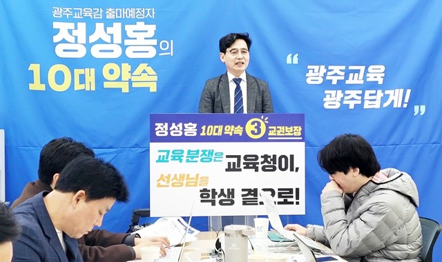 [위키트리 광주전남취재본부 노해섭 기자]정성홍 광주교육감 예비후보가 교사가 교육활동의 본질인 ‘수업’과 ‘학생 지도’에만 전념할 수 있는 시스템을 구축하겠다며, 교권 문제의 책임을 교육청으로 전면 이관하는 혁신적인 공약을 발표했다. 이는 개별 교사에게 전가되던 과도한 법적·행정적 부담을, 교육감이 직접 책임지는 공적 시스템으로 해결하겠다는, 교권 보장 패러다임의 근본적인 전환을 예고하는 것이다.