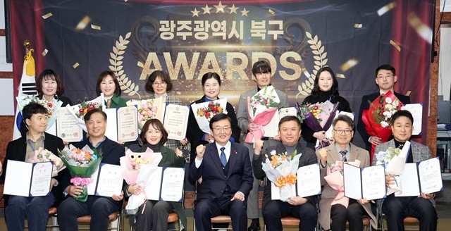 [위키트리 광주전남취재본부 노해섭 기자]광주시 북구(구청장 문인)는 30일 소회의실에서 연말을 맞아 현안업무를 성실히 수행한 정부포상, 구정 BEST 7, 모범·우수공무원 등이 참석한 가운데 2025년 송년 북구 어워드 ‘북구를 빛낸 사람들’ 시상식을 개최했다.