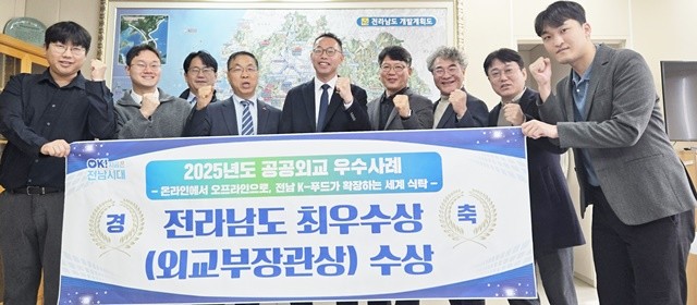 [위키트리 광주전남취재본부 노해섭 기자]전라남도(도지사 김영록)는 외교부가 주최한 ‘2025 공공외교 우수사례’ 공모에서 지자체 부문 최우수 기관으로 선정됐다고 밝혔다.