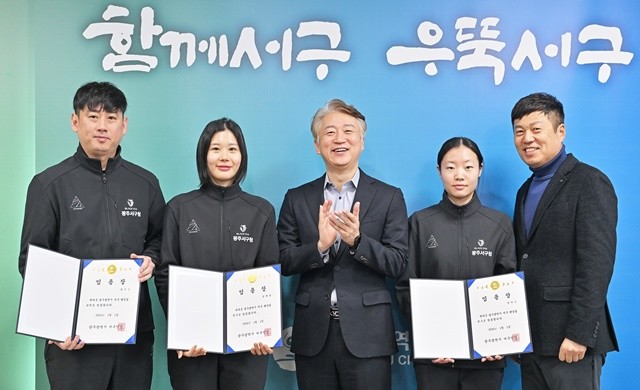 [위키 포토]광주시 서구, 펜싱팀 신규 단원 위촉 2025-12-31 11:17 [위키 포토]광주시 서구, 펜싱팀 신규 단원 위촉 [위키트리 광주전남취재본부 노해섭 기자]광주시 서구(구청장 김이강)는 31일 집무실에서 정두수 코치, 김채린 선수, 김다은 선수에게 서구청 펜싱팀 신규 임용장을 수여했다./광주 서구 제공 광주시 서구김이강 광주시 서구청장서구청 펜싱팀 신규 단원 위촉 home 노해섭 기자 nogary@wikitree.co.kr