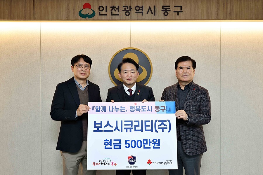 보스시큐리티(주)(대표 공병석)는 지난 19일 동구(구청장 김찬진)에 후원금 500만원을 기탁했다고 밝혔다.
