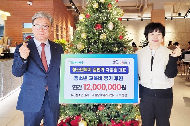 [위키트리 광주전남취재본부 노해섭 기자]광주광역시 서구 화정2동(동장 이형숙)은 청소년복지 실천가 차승훈 대표로부터 청소년들을 위한 정기 후원금 1200만원을 기탁받았다고 6일 밝혔다.