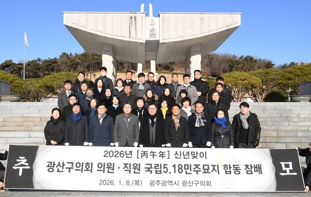 [위키트리 광주전남취재본부 노해섭 기자]광주시 광산구의회(의장 김명수)가 8일 국립5·18민주묘지 합동 참배와 어르신 배식 봉사로 2026년 새해 의정활동의 문을 열었다.
