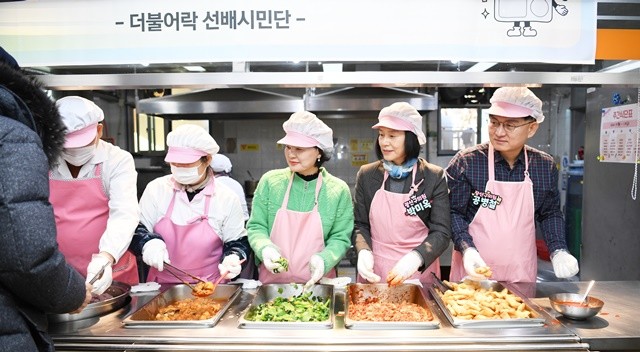 참배를 마친 의원들은 곧바로 더불어락 노인복지관으로 이동해 어르신들을 위한 배식 봉사활동을 펼쳤다. 의원들은 직접 앞치마를 두르고 점심 식사를 대접하며 나눔의 가치를 실천하고, 복지관 종사자들과의 간담회를 통해 현장의 애로사항을 청취하는 등 ‘소통 의정’을 몸소 실천했다.