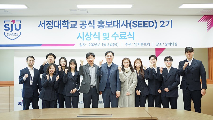 서정대학교 홍보대사(SEED) 2기 학생들이 직접 기획·제작한 대학 홍보 영상이 조회수 180만 회를 기록하며 큰 호응을 얻고 있는 가운데, 서정대학교가 지난 1월 8일 홍보대사 2기 수료식을 개최했다.