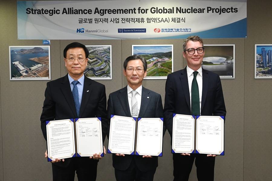 [대구경북=위키트리]이창형 기자=한국전력기술(사장 김태균, 이하 ‘한전기술’)은 지난 8일, Turner & Townsend (이하 ‘T&T’) 및 한미글로벌과 해외 원전 사업을 위한 “전략적 제휴 협약(Strategic Alliance Agreement)”을 체결했다.