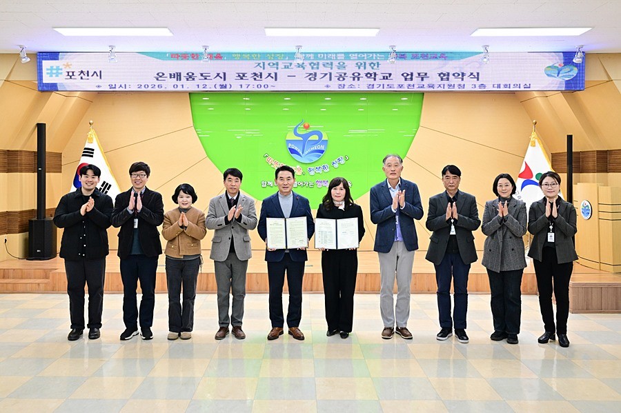 경기 포천시(시장 백영현)와 포천교육지원청은 지난 12일 포천교육지원청 대회의실에서 ‘지역교육협력을 위한 온배움도시 포천시–경기공유학교 업무협약’을 체결했다.