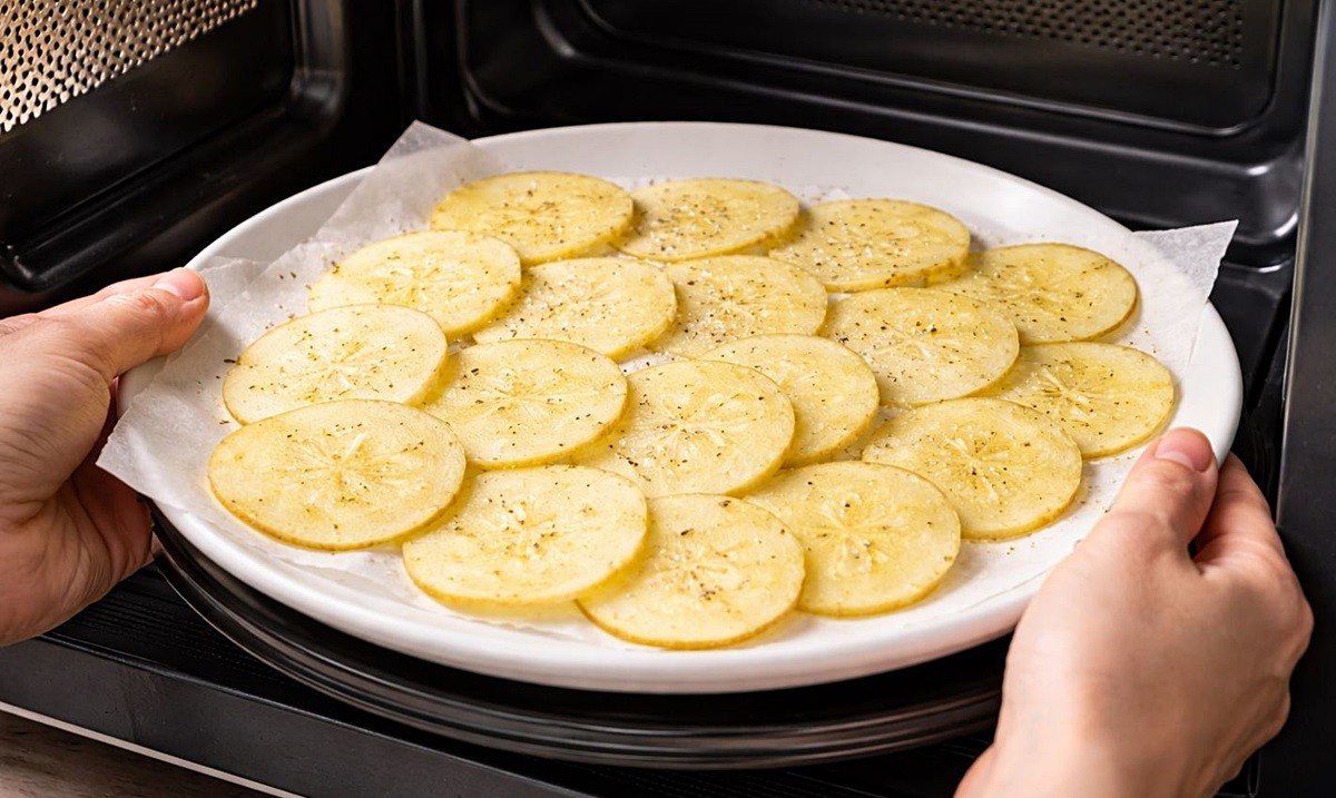 가장 먼저 신경 써야 할 것은 감자 슬라이스 두께다. 전자레인지로 바삭함을 만들려면 너무 두껍지 않아야 하고 너무 얇아도 금방 타거나 가장자리만 과하게 마를 수 있다. 집에서 만들기 좋은 기준은 대략 1~2mm 정도다.
