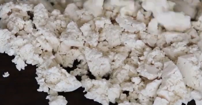 두부는 부침용보다는 찌개용이나 연두부보다 살짝 단단한 일반 두부가 적당하다. 끓는 물에 한 번 데쳐 사용하면 콩 비린내가 줄고 식감도 더 깔끔해진다. 데친 두부는 면포나 키친타월로 물기를 눌러 빼준 뒤 손으로 부드럽게 으깨거나 칼로 잘게 썬다. 너무 곱게 으깨면 죽처럼 되기 쉬워, 덩어리가 살짝 남도록 하는 게 좋다.
