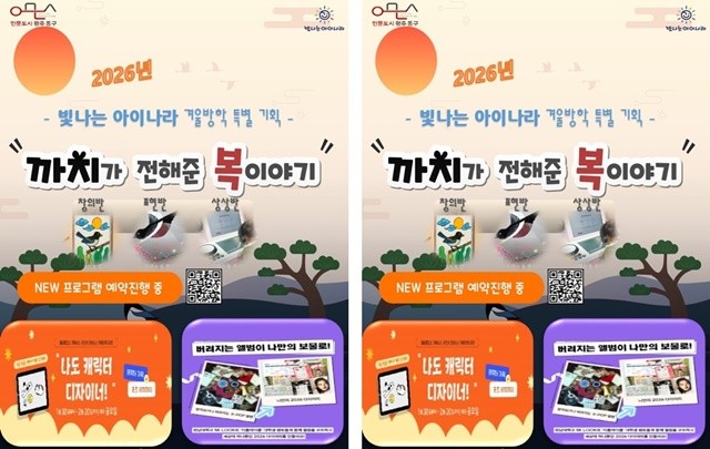 동구 관계자는 “빛나는 아이나라는 아이들이 놀이처럼 예술과 기술을 접하며 성장할 수 있는 도심 속 문화 놀이터”라면서 “겨울방학 동안 가족이 함께 참여해 의미 있는 추억을 만들 수 있는 시간이 되길 바란다”고 말했다.