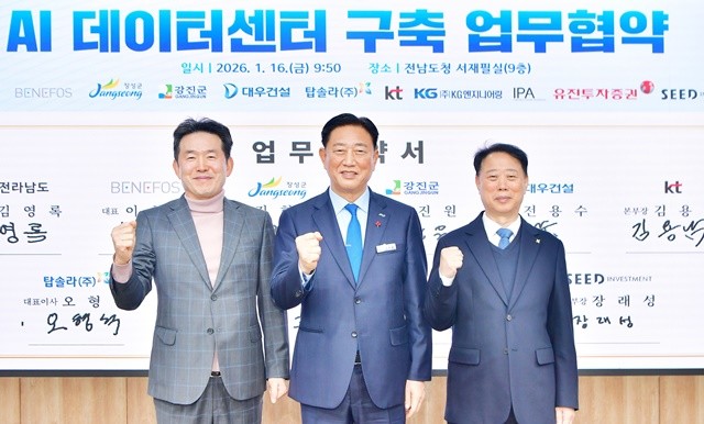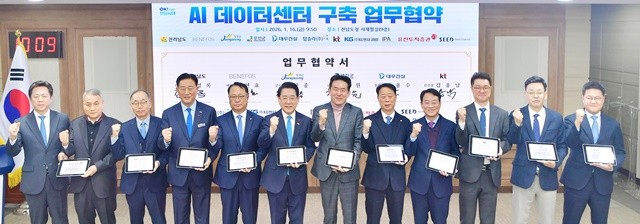 장성군은 16일 전남도청에서 전라남도, ㈜베네포스, KT, 대우건설 등 9개 기관 및 기업과 ‘AI 데이터센터 구축 업무협약’을 체결했다고 밝혔다. 이번 협약은 단순한 지자체의 투자 유치를 넘어, 설계·시공·운영·자금 조달까지 완벽한 진용을 갖춘 ‘드림팀’이 꾸려졌다는 점에서 업계의 주목을 받고 있다.