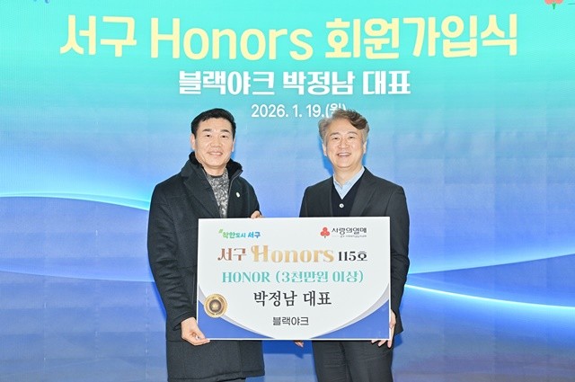 [위키 포토]박정남 블랙야크 광주상무점 대표, 서구아너스 회원 가입 2026-01-19 23:30 [위키 포토]박정남 블랙야크 광주상무점 대표, 서구아너스 회원 가입 [위키트리 광주전남취재본부 노해섭 기자]광주시 서구(구청장 김이강)는 19일 서구청 1층 기부자 명예의 전당에서 블랙야크 광주상무점 박정남 대표의 서구아너스 회원 가입식을 가졌다. 광주 서구 제공 광주시 서구김이강 광주시 서구청장블랙야크 광주상무점 박정남 대표 home 노해섭 기자 nogary@wikitree.co.kr