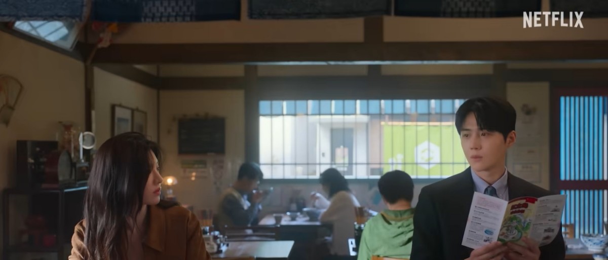 사진 속 장소는 주인공들의 첫 만남이 이뤄진 곳이다. 바람난 남자친구의 상대를 찾아온 차무희와 그녀를 호기심 있게 바라보는 주호진의 모습이 기대감을 더한다. 극중 '모모짱 라멘집'이라고 소개된 이 가게는 현재 빙수 등 독특한 디저트를 판매하는 카페인 것으로 알려졌다.