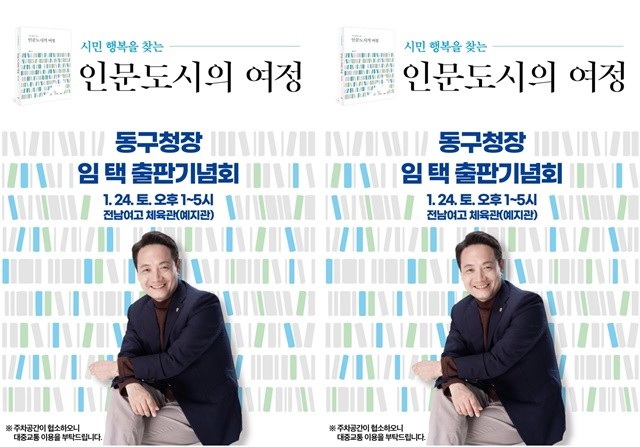 임 청장은 오는 24일 오후 1시 전남여고 체육관에서 저서 『인문도시의 여정: 시민 행복을 찾는 길』 출판기념회를 갖고, 민선 7·8기를 관통하는 동구만의 차별화된 도시 비전을 공유한다.