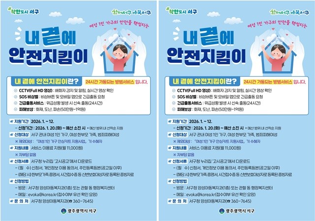 김민정 서구 양성아동복지과장은 “이 사업은 범죄 예방을 넘어 여성들이 일상에서 느끼는 공포를 덜어주는 데 큰 의미가 있다”며 “주민들이 안심하고 생활할 수 있는 환경을 만드는 데 최선을 다하겠다”고 말했다.