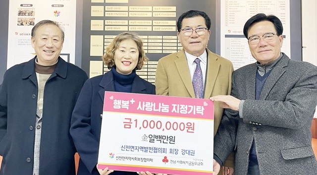 이재이 신전면장은 “취임과 동시에 지역을 위한 나눔을 실천해 주신 강대권 회장님의 뜻에 깊이 감사드린다”며 “이번 기탁이 신전면 지정기탁 제6호로 이어져, 따뜻한 나눔문화가 지역 전반으로 확산되는 계기가 되길 바란다”고 말했다.