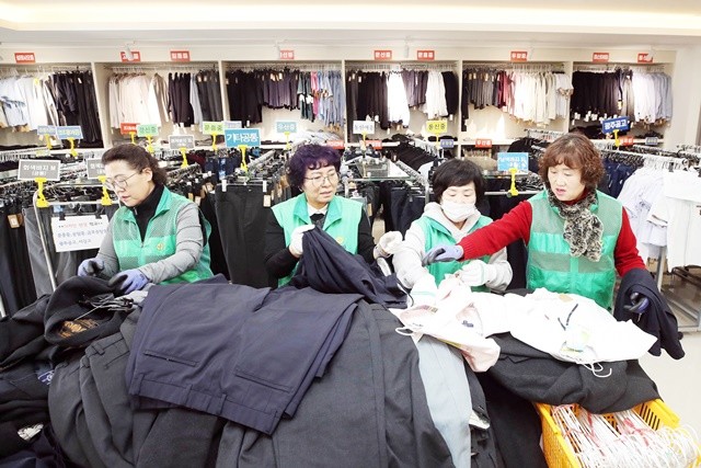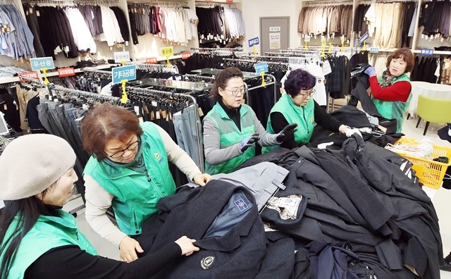 [위키트리 광주전남취재본부 노해섭 기자]다음 달 5일 상설 교복나눔장터 본격 개장을 앞둔 22일, 광주시 북구 우산동 새마을회관에서 관계자들이 교복을 분류하고 있다.