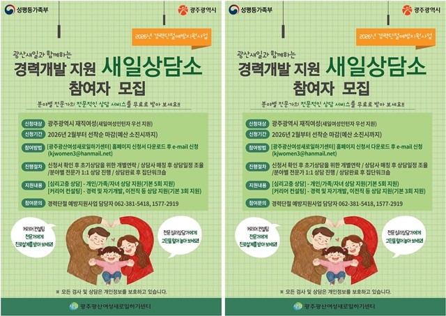 자세한 사항은 광주광산여성새로일하기센터 홈페이지 또는 전화문의로 확인하면 된다.
