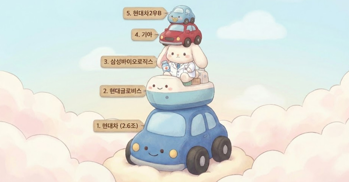 2026년 1월 셋째 주 국내 주식시장에서 개인 투자자들의 자금은 현대차 그룹주에 폭발적으로 집중된 것으로 나타났다. 1월 19일부터 23일까지 5거래일간 코스피 시장 내 개인 순매수 상위 종목을 분석한 결과, 최상위 5개 종목 중 무려 4개가 범현대가 계열사로 채워졌으며 특히 1위 종목에만 조 단위의 자금이 쏠리는 강력한 매수 우위 현상이 목격됐다.