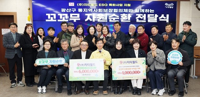 광산구는 27일 구청 상황실에서 민관 협력으로 추진한 ‘꼬리에 꼬리를 무는 자원순환(이하 꼬꼬무 자원순환)’ 사업의 성과 공유 및 수익금 전달식을 가졌다고 밝혔다.
