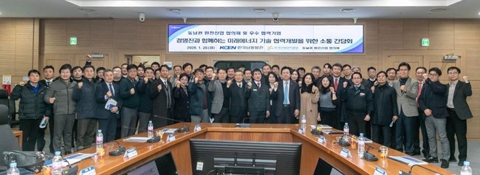 한국남동발전은 26일 경남 진주 본사에서 한국산업단지공단 경남본부, 동남권 원전협의체 및 경남 국가산업단지 입주기업 관계자 등 50여 명이 참석한 가운데 미래에너지 기술협력 강화를 위한 간담회를 열었다고 밝혔다.