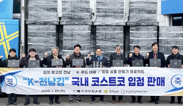 신현곤 전남도 국제협력관은 “이번 코스트코 입점은 케이-전남 김이 품질과 브랜드 경쟁력을 갖춘 글로벌 상품임을 입증하는 중요한 계기”라며 “앞으로도 김을 비롯한 전남 농수산물의 브랜드화를 통해 인지도 제고와 안정적 판로를 확보해 지역 기업과 어업인의 소득 증대에 기여하겠다”고 말했다.