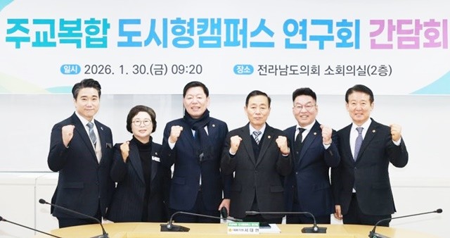 [위키트리 광주전남취재본부 노해섭 기자]전남도의회 주교복합 도시형캠퍼스 연구회 서대현 대표의원은 1월 30일 전라남도의회 소회의실에서 간담회를 개최했다.