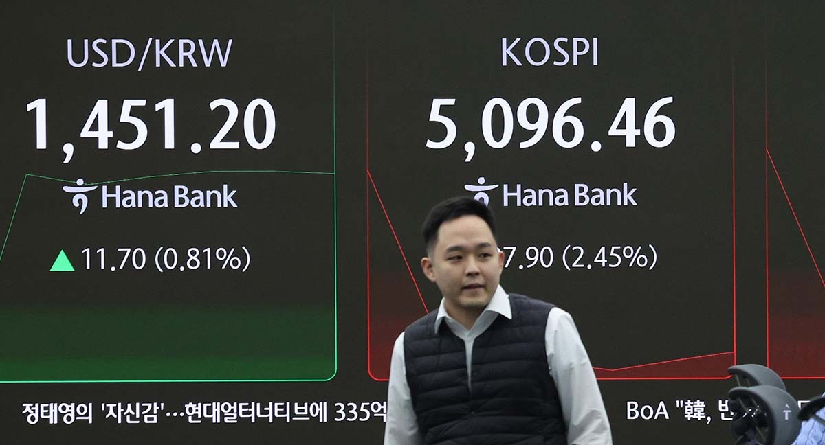 미국 증시 약세 여파로 2일 국내 증시가 급락하며 코스피가 장중 한때 5000선 아래로 내려갔다.