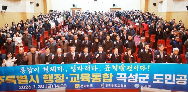 [위키트리 광주전남취재본부 노해섭 기자] 전남 곡성군은 지난 1월 30일 전남광주특별시 행정·교육통합에 대한 의견을 수렴하기 위해 곡성레저문화센터 동악아트홀에서 도민공청회를 개최했다고 2일 전했다.