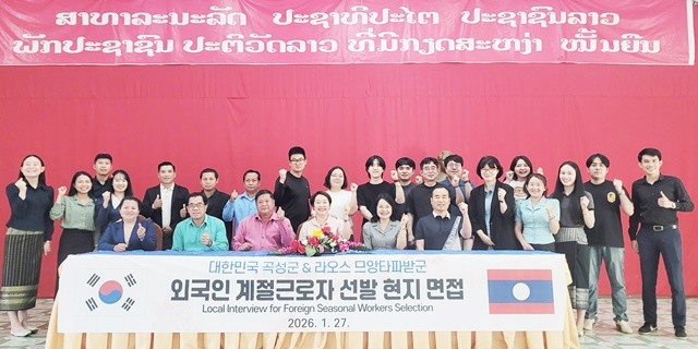 [위키트리 광주전남취재본부 노해섭 기자] 전남 곡성군은 저출산, 고령화로 인한 농촌 인력난 해소를 위하여 지난 1월 25일부터 1월 27일까지 라오스 현지 면접을 통해 2026년 공공형 외국인 계절근로자 90명을 선발하였다고 2일 밝혔다.
