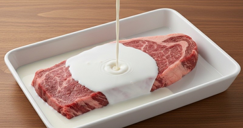 두 번째 방법은 우유다. 고기를 우유에 20분 정도 담가두면 육질이 부드러워지고 특유의 누린내도 줄어든다. 우유 속 단백질이 고기 표면을 감싸 수분 손실을 막아주는 역할을 한다. 우유에서 건진 뒤에는 물로 헹구지 말고 키친타월로 가볍게 닦아낸다.