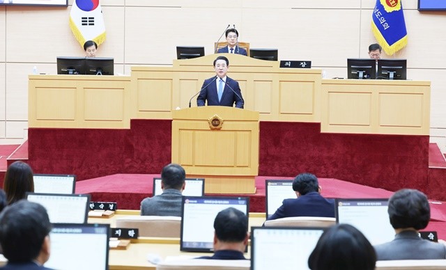 김영록 전라남도지사가 도의회 본회의장에 서서 행정통합의 청사진을 제시하며 도의원들의 결단을 호소했다. 김 지사는 이번 통합을 단순한 행정구역 합치기가 아닌, 지방 소멸 위기를 극복할 유일한 ‘생존 전략’으로 규정했다.