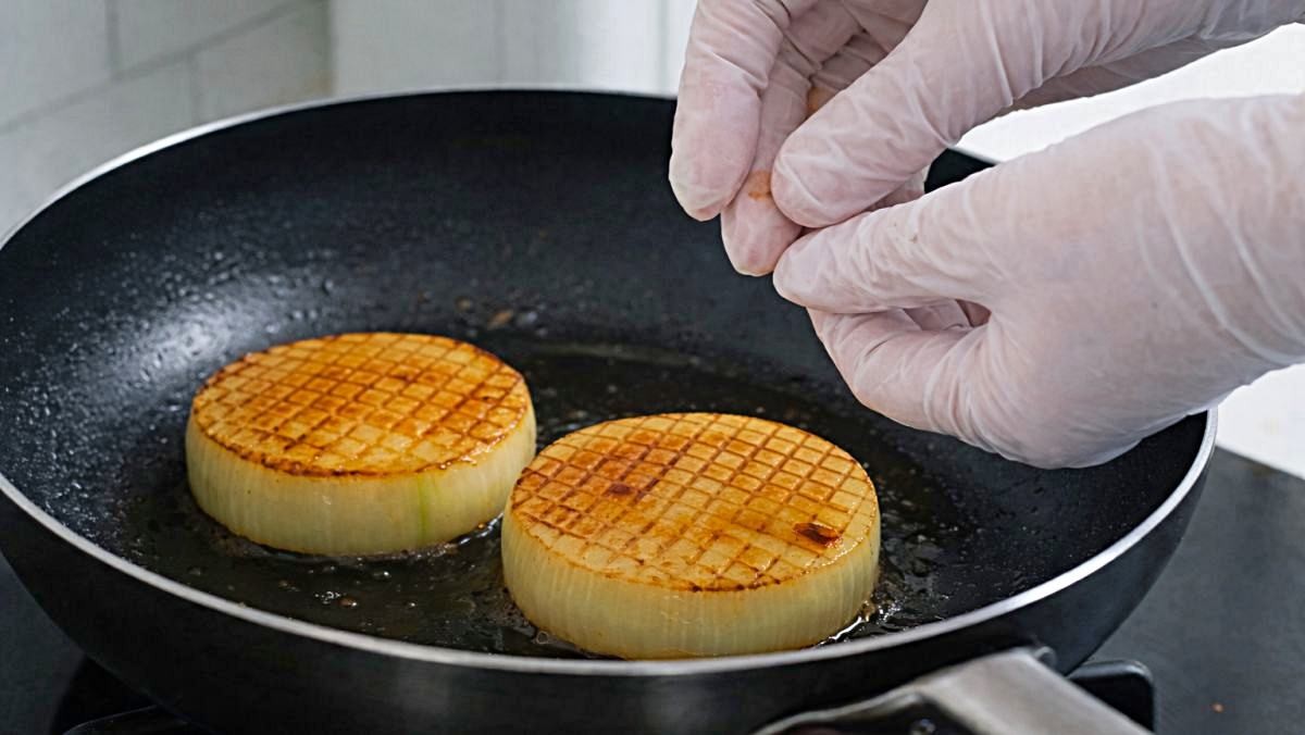 조리는 단순하다. 팬에 올리브유를 두르고 무를 먼저 굽는다. 이때 물기가 많으면 튈 수 있어 키친타월로 겉면을 한 번 닦아내면 조리가 수월하다. 무의 한쪽 면이 노릇하게 브라우닝되면 뒤집어 반대쪽도 같은 방식으로 굽는다. 표면이 갈색을 띠기 시작하면 단맛이 살아난 상태다.