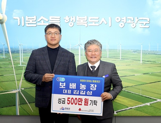 [위키트리 광주전남취재본부 노해섭 기자]보배농장(대표 김길성)은 지난 3일 영광군 공식 연합모금처인“희망이 모이는 영광곳간”에 이웃돕기 성금 5백만 원을 기탁하며 지역사회 나눔 실천에 동참했다.