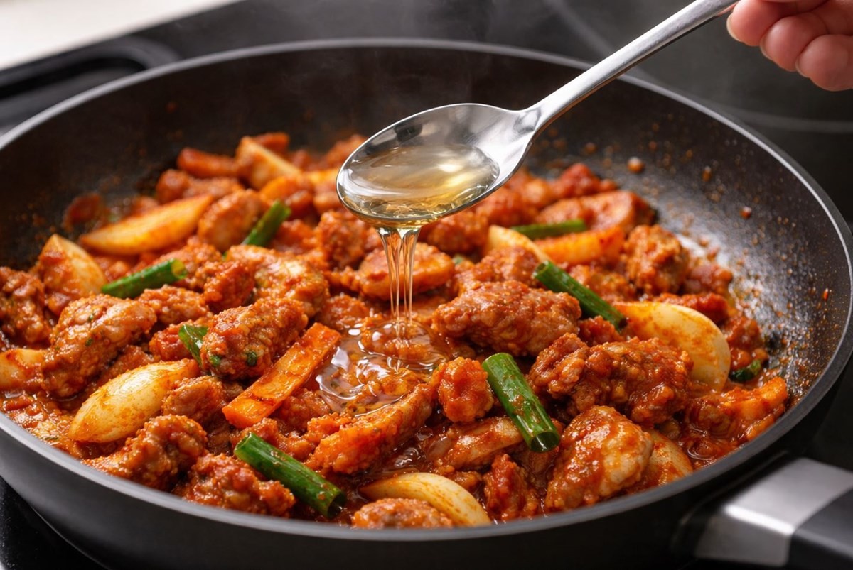 이렇게 하면 물엿이 타지 않으면서도 양념에 자연스럽게 섞여 윤기와 풍미를 더해 준다. 반대로 처음부터 물엿을 넣고 오래 볶으면 단맛이 둔해지고 양념이 눌어붙기 쉬워 맛이 떨어질 수 있다.