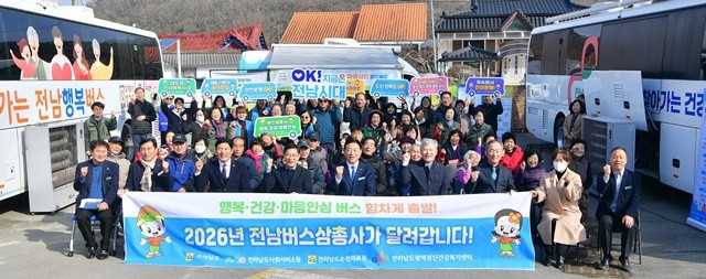 전라남도는 5일 장성에서 출발식을 열고, 2026년 한 해 동안 ‘전남행복버스’, ‘전남건강버스’, ‘마음안심버스’를 활용해 도내 취약 지역을 집중 케어한다고 밝혔다.