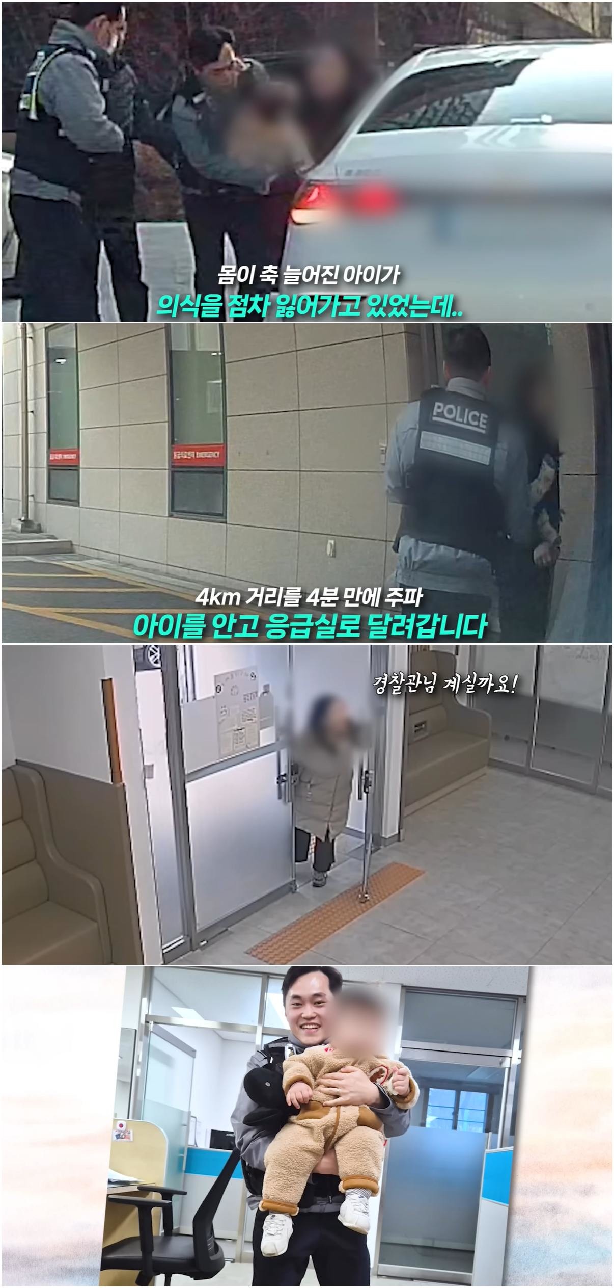 현장에 도착한 경찰은 상황의 시급함을 인지하고 아기와 보호자를 태운 채 약 4km의 거리를 약 4분 만에 주파해 무사히 병원에 도착했다.